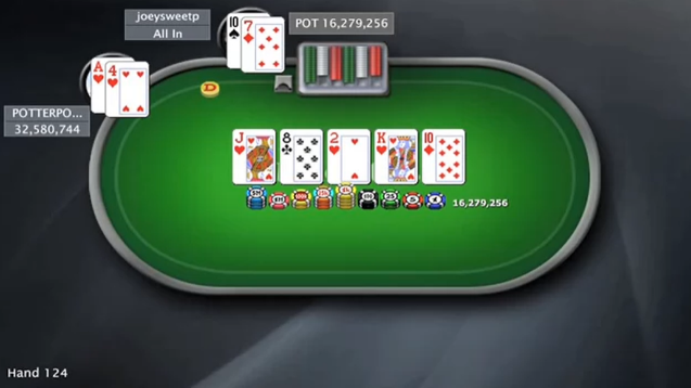 - joeysweetp: 10♠ 7♦ — sin color, sin salvación.